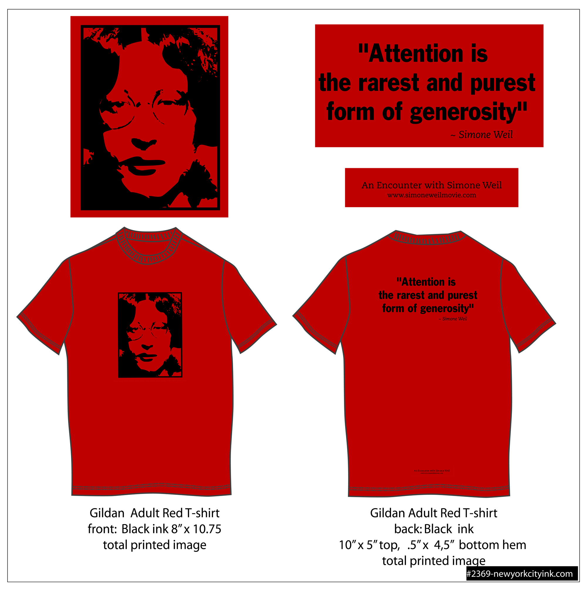 Get your own iconic Simone Weil T-shirt. 100% preshrunk cotton. Gildan brand.